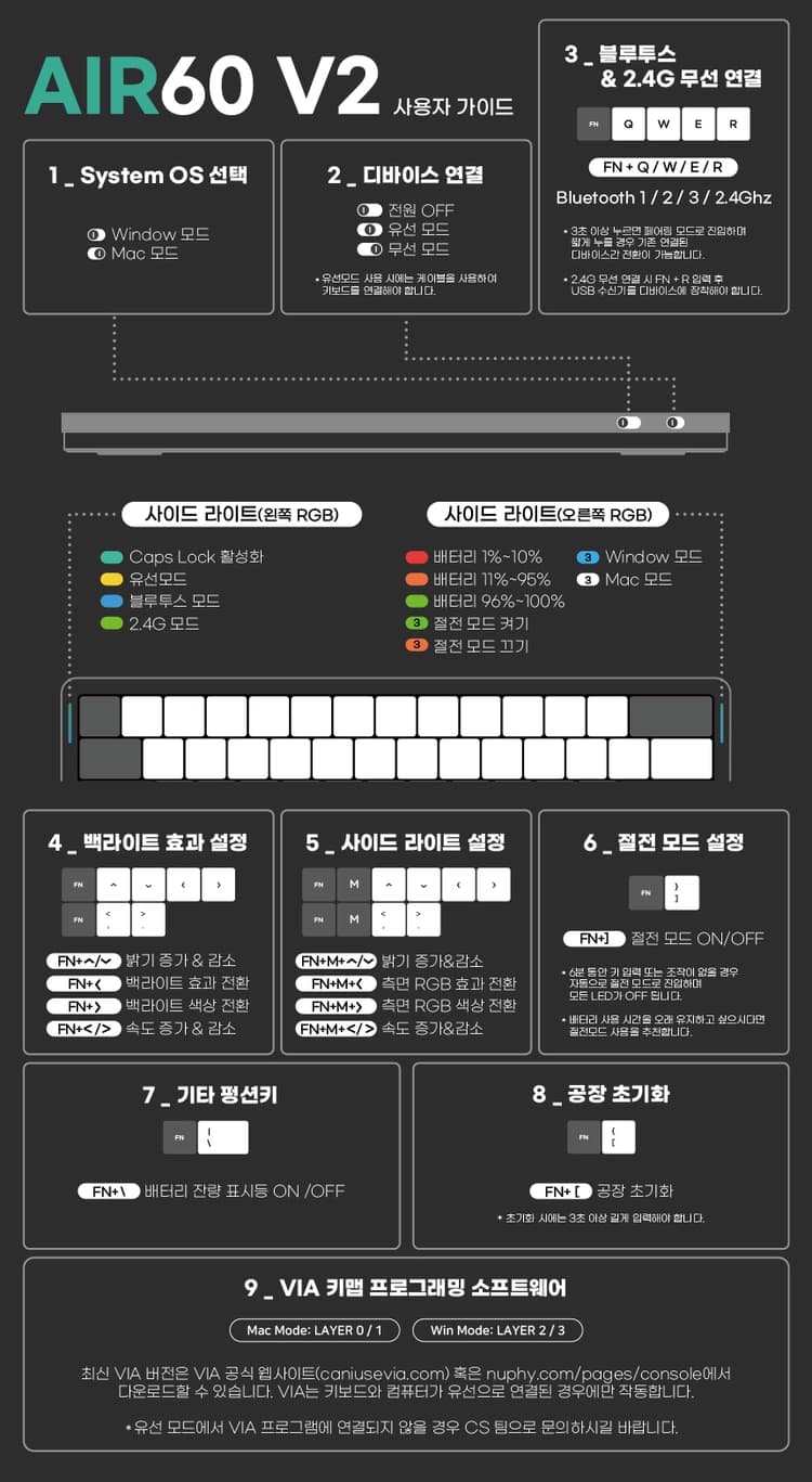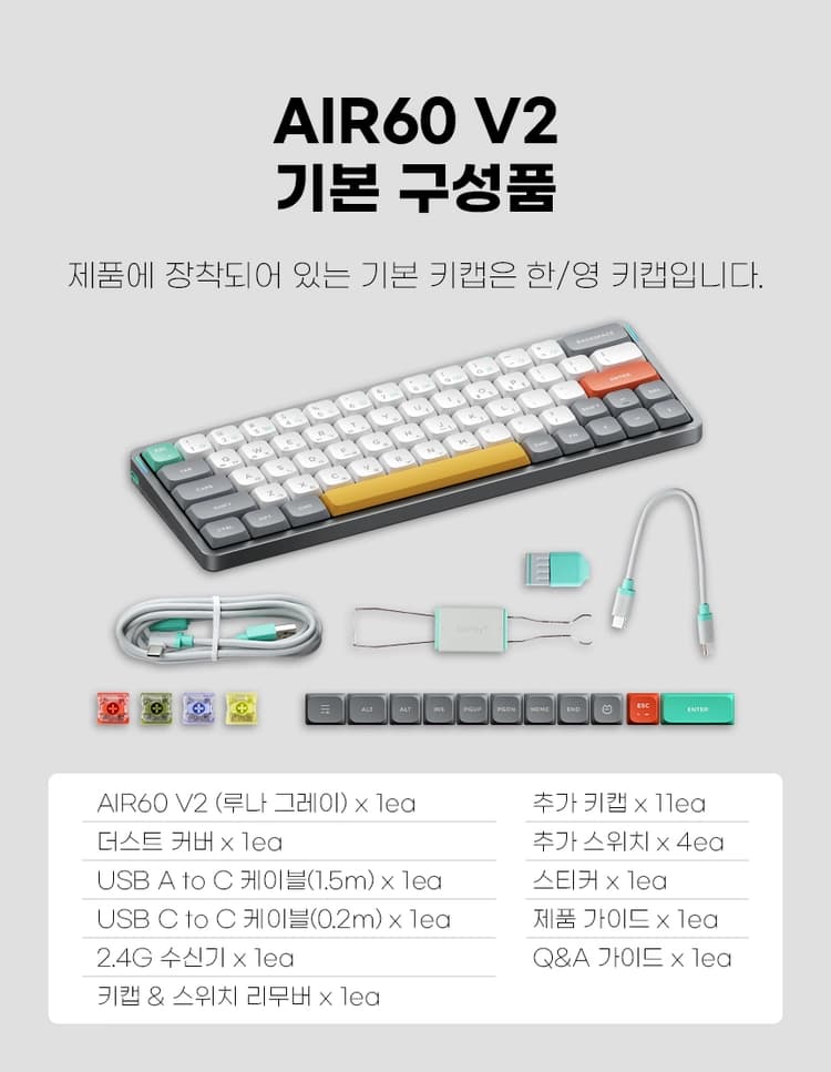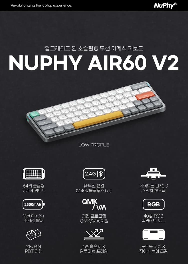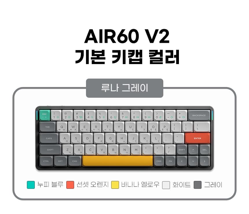 NUPHY AIR60 V2 기계식 키보드 청축 블루투스 무선 유선 미니 텐키리스 슬림형