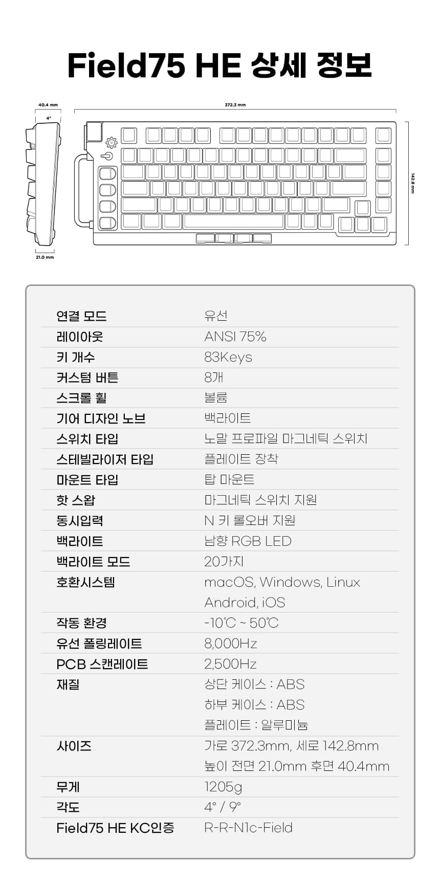 NUPHY [Magnetic White] Field75 HE 자석축 기계식키보드 화이트축 래피드 트리거 게이밍